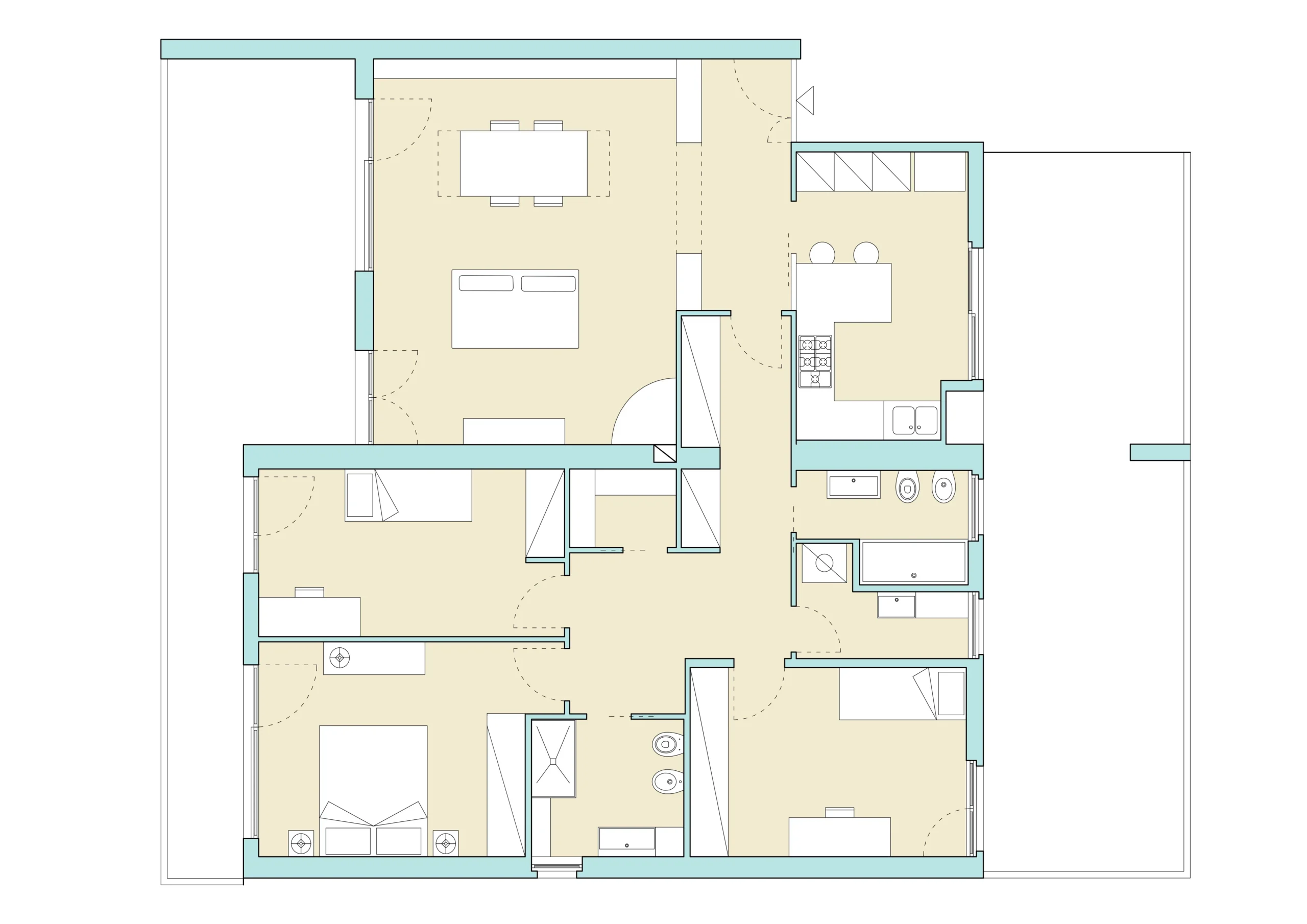 DOMus MF si presenta fin dall’inizio con una buona suddivisione degli spazi, articolati tra zona giorno e zona notte. L’intervento di ristrutturazione ha previsto poche demolizioni e ricostruzioni, puntando a migliorare la funzionalità degli ambienti.